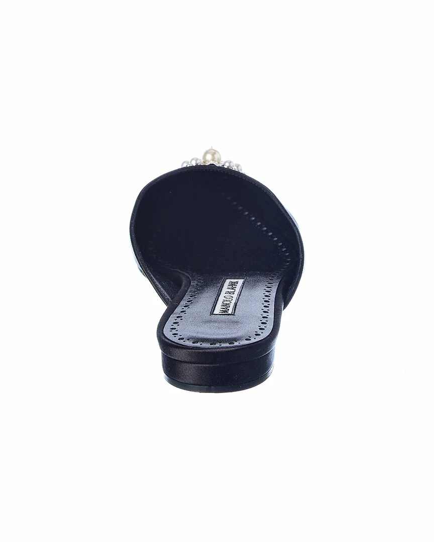 - Beanza Satin Flat In Black Satin And Silver-Tone Hardware With Crystal And Pearl Embellishments