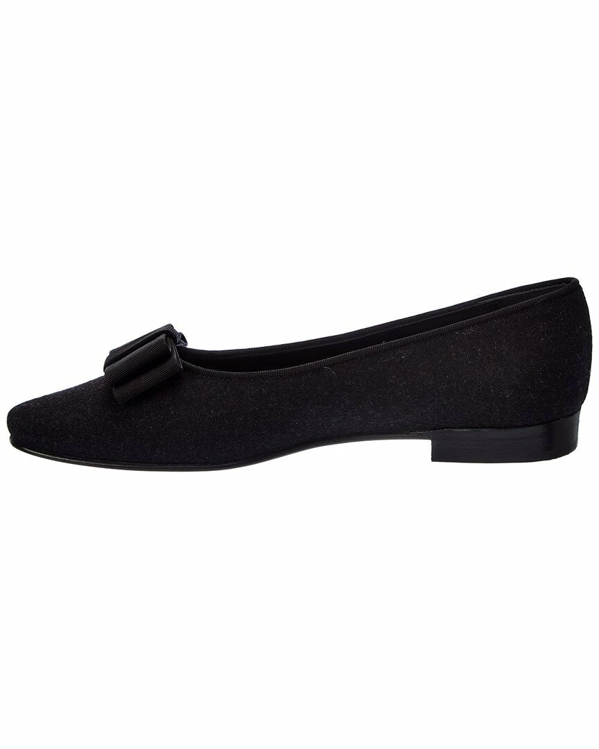 - Bulgatora Wool Flat In Black Wool With Layered Grosgrain Bow