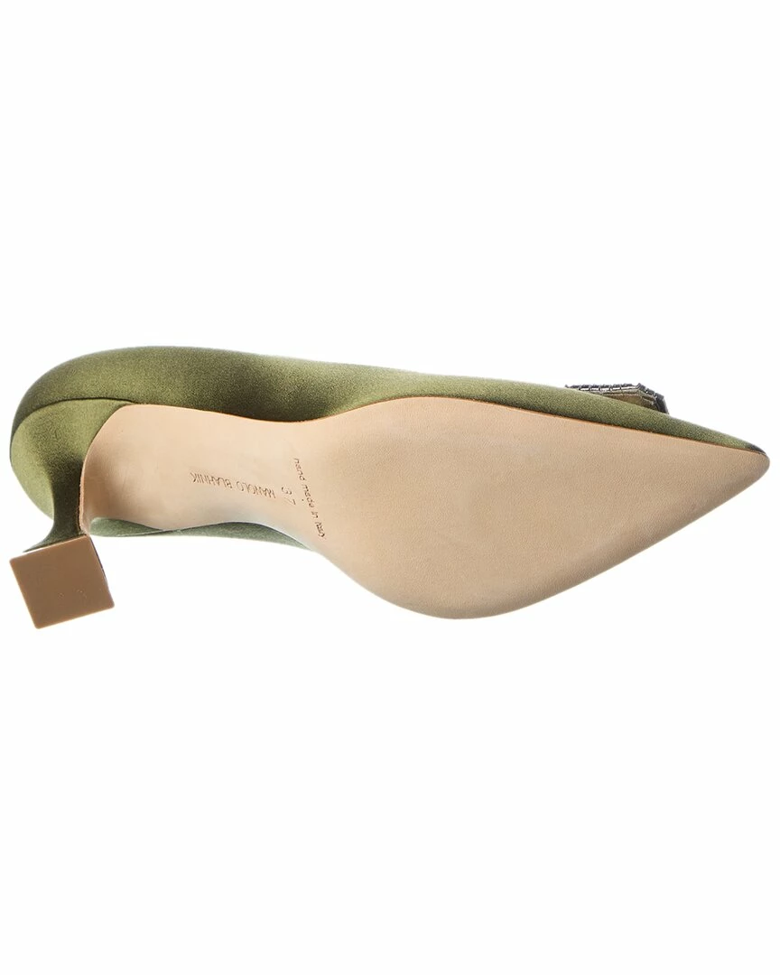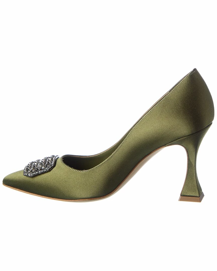 - Floritanuhi 90 Satin Pump In Green Satin And Silver-Tone Hardware With Crystal-Embellished Buckle