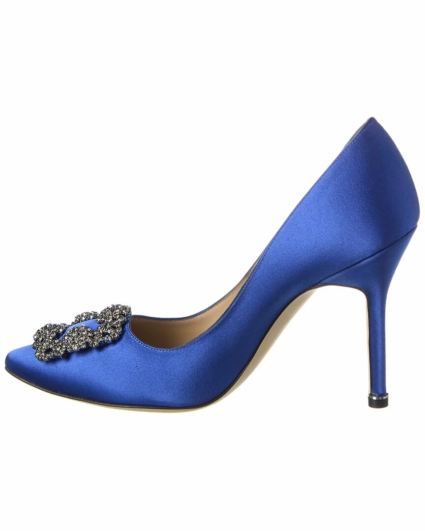 - Hangisi 105 Satin Pump In Blue Satin And Silver-Tone Hardware With Crystal-Embellished Buckle