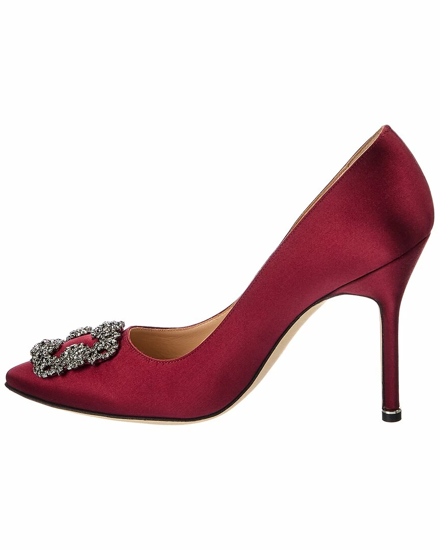 - Hangisi 105 Satin Pump In Dark Red Satin And Silver-Tone Hardware With Crystal-Embellished Buckle