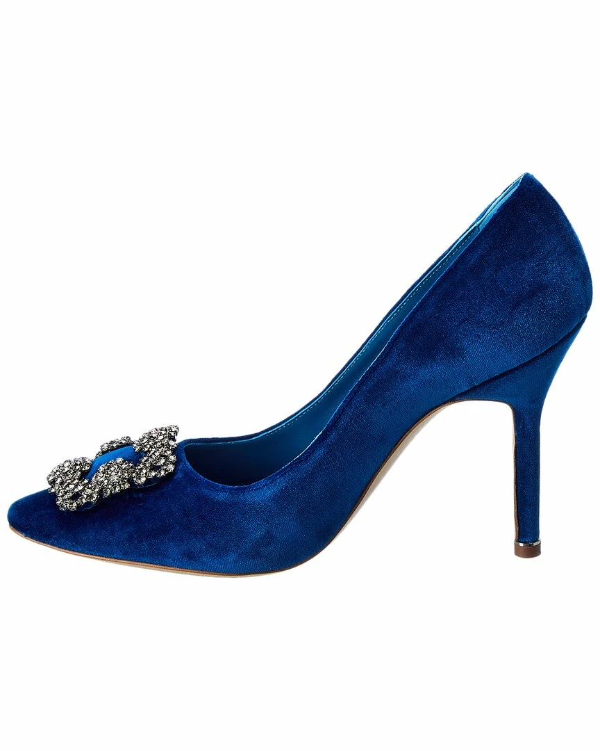 - Hangisi 105 Velvet Pump In Blue Velvet And Silver-Tone Hardware With Crystal-Embellished Buckle