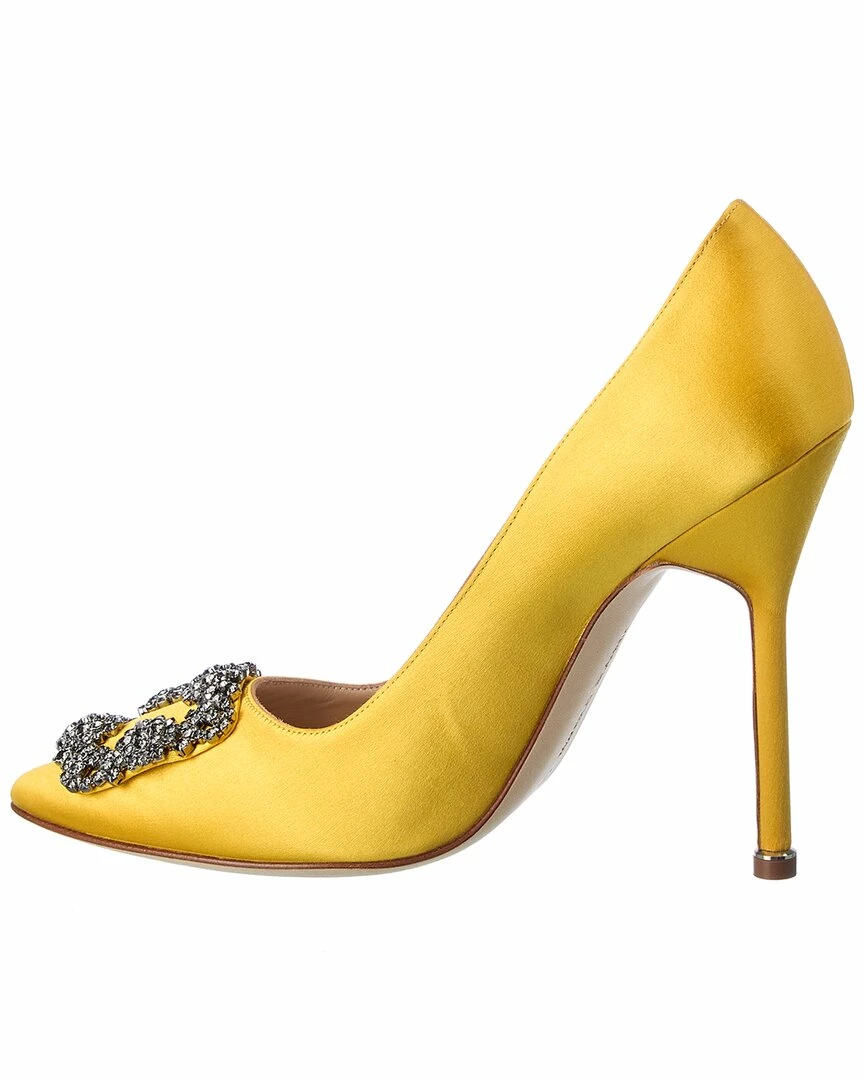 - Hangisi 115 Satin Pump In Yellow Satin And Silver-Tone Hardware With Crystal-Embellished Buckle