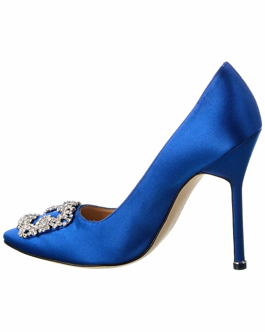 - Hangisi 115 Satin Pump In Blue Satin And Silver-Tone Hardware With Crystal-Embellished Buckle