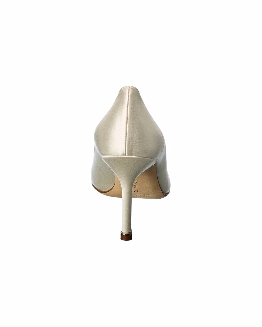 - Hangisi 90 Satin Pump In White Satin And Gunmetal-Tone Hardware With Crystal Buckle