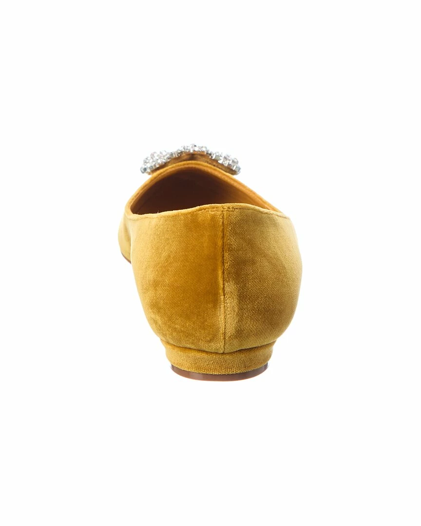 - Hangisi Velvet Flat In Yellow Velvet And Silver-Tone Hardware With Crystal-Embellished Buckle