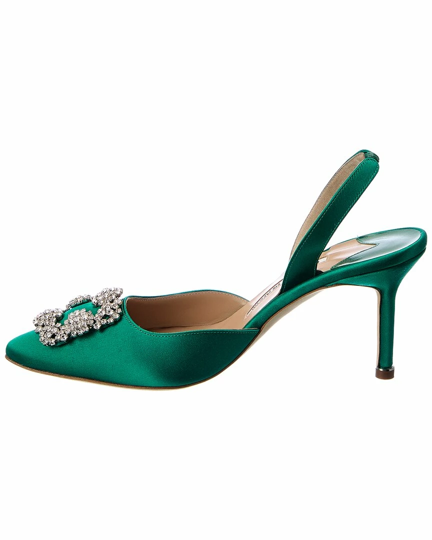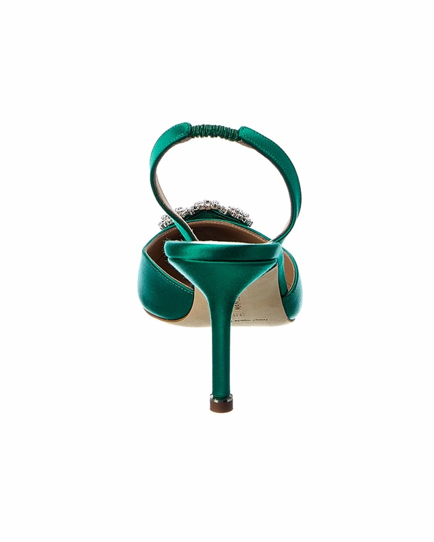 - Hangisli 70 Satin Slingback Pump In Green Satin And Silver-Tone Hardware With Crystal-Embellished Buckle