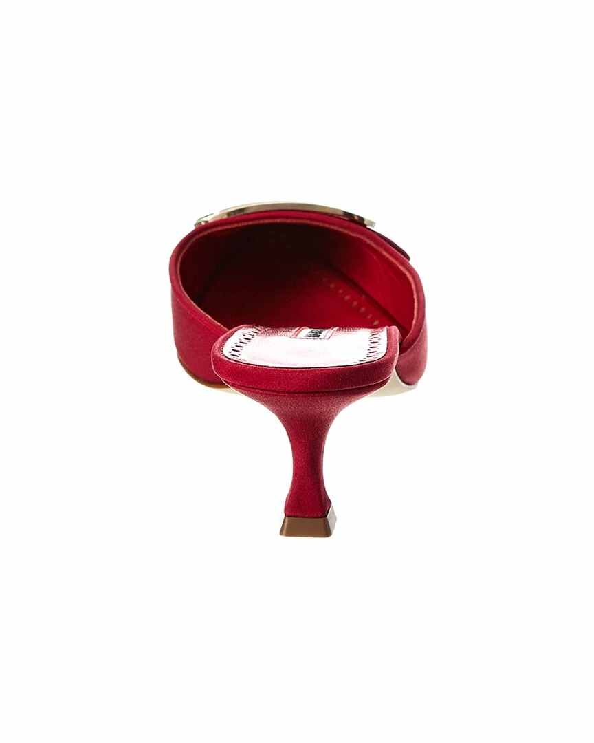 - Maysale 50 Silk Pump In Red Silk And Silver-Tone Hardware With Buckle Accent