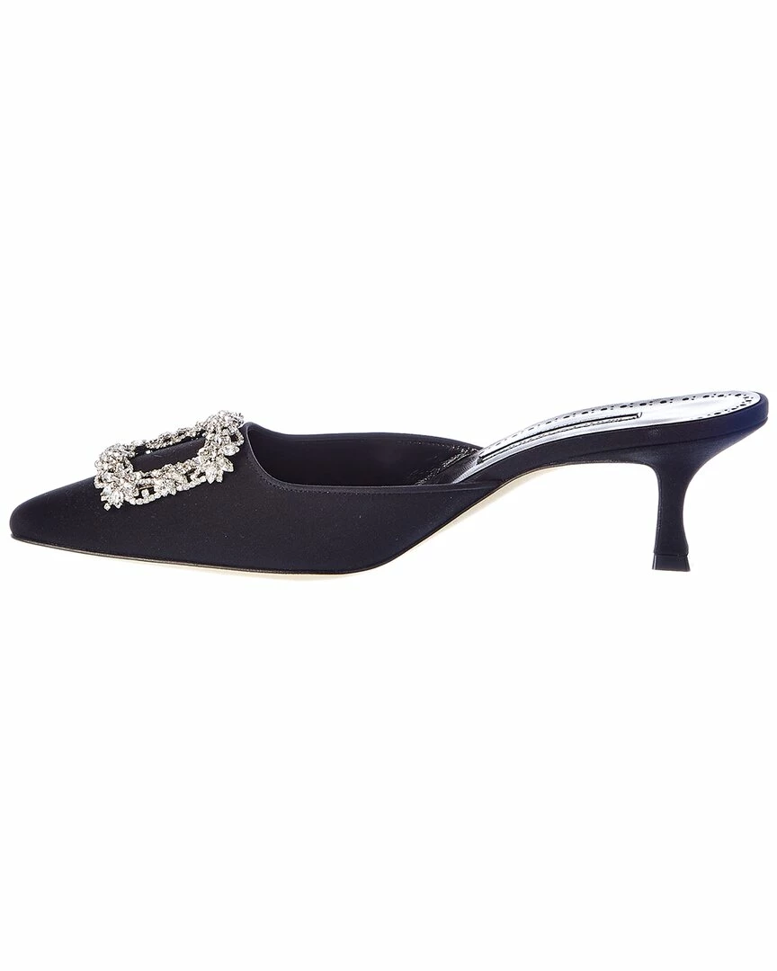 - Maysale 50 Silk Pump In Black Silk With Crystal-Embellished Buckle