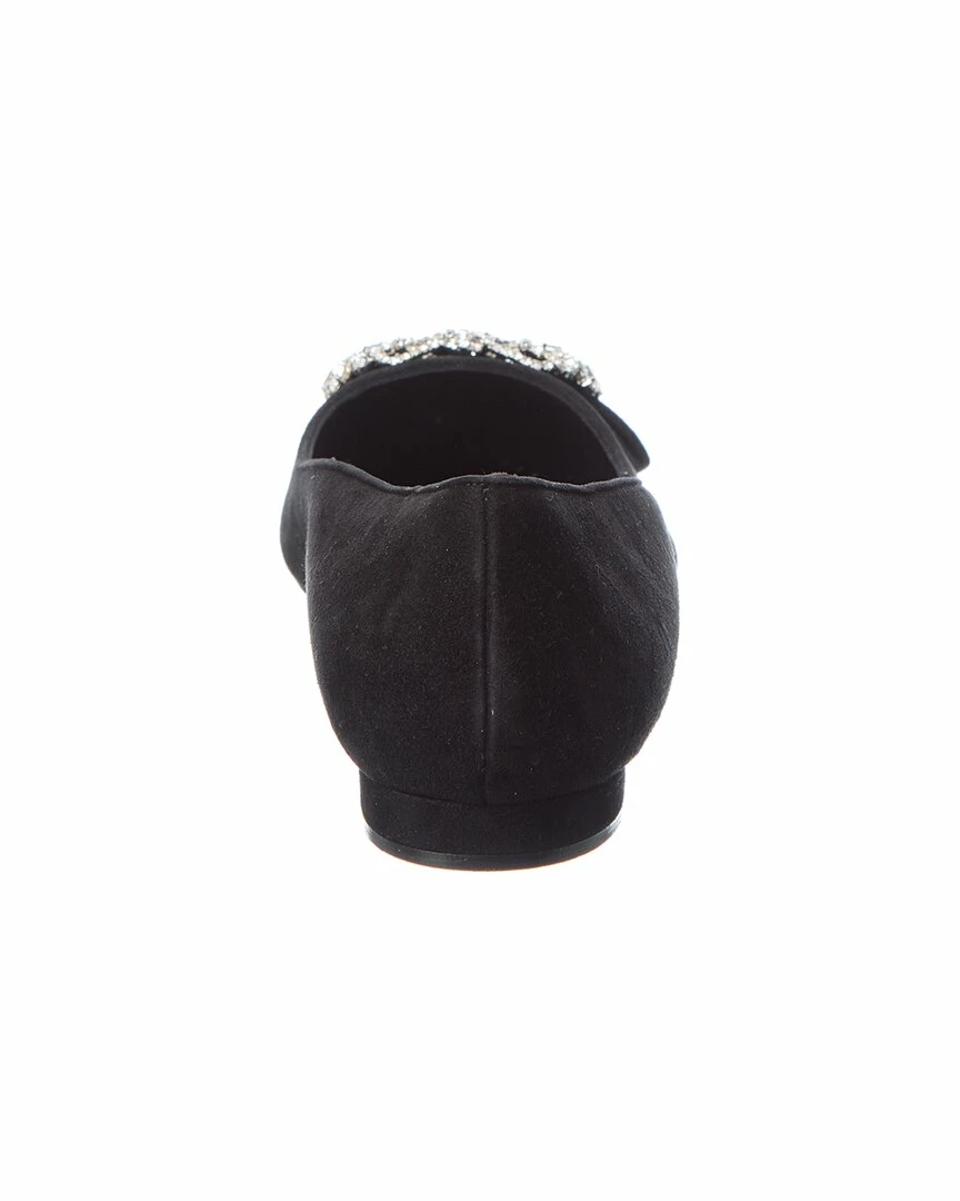 - Maysale Suede Flat In Black Suede And Silver-Tone Hardware With Strap With Crystal-Embellished Buckle