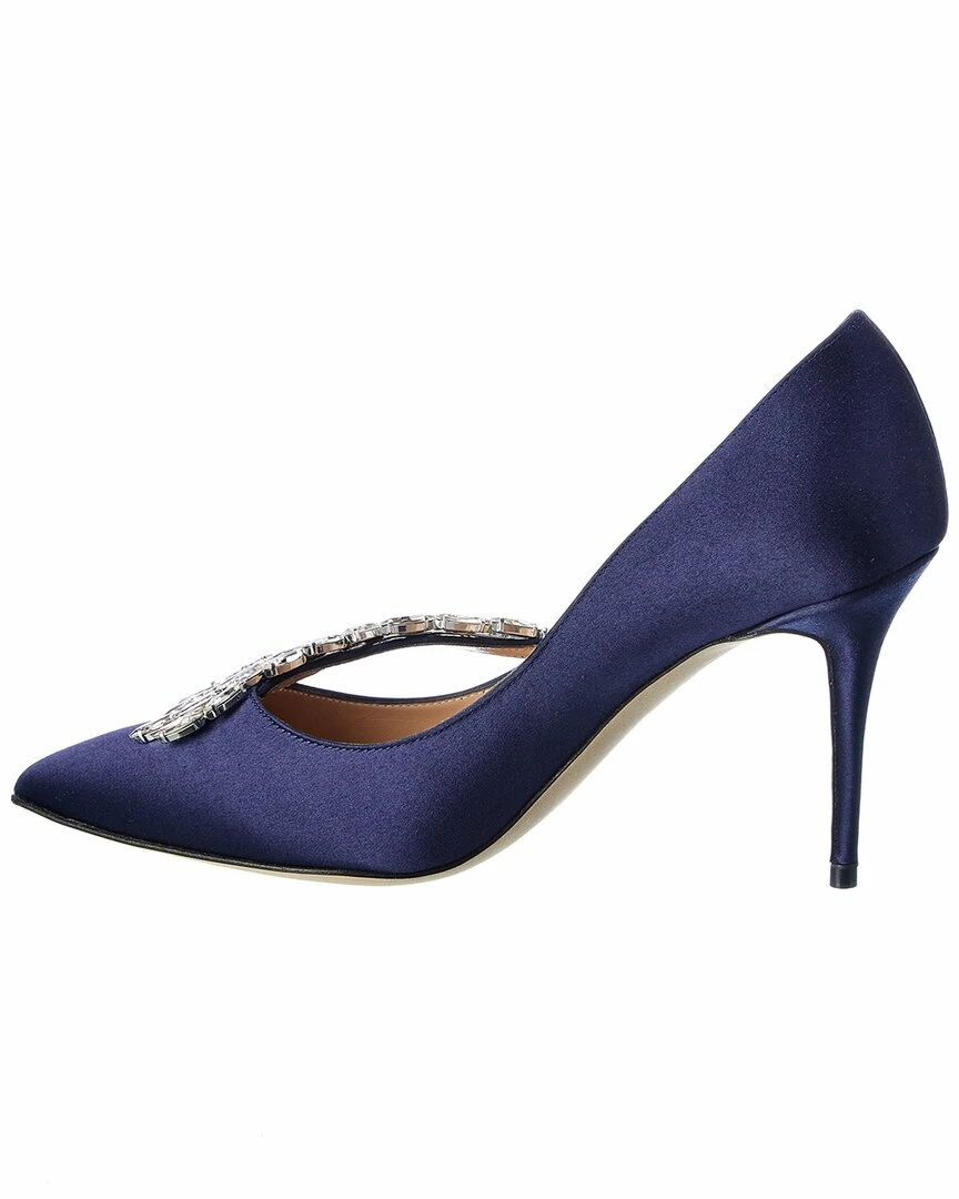 - Nadira 90 Satin Pump In Navy Satin And Silver-Tone Hardware With Crystal-Embellished Strap