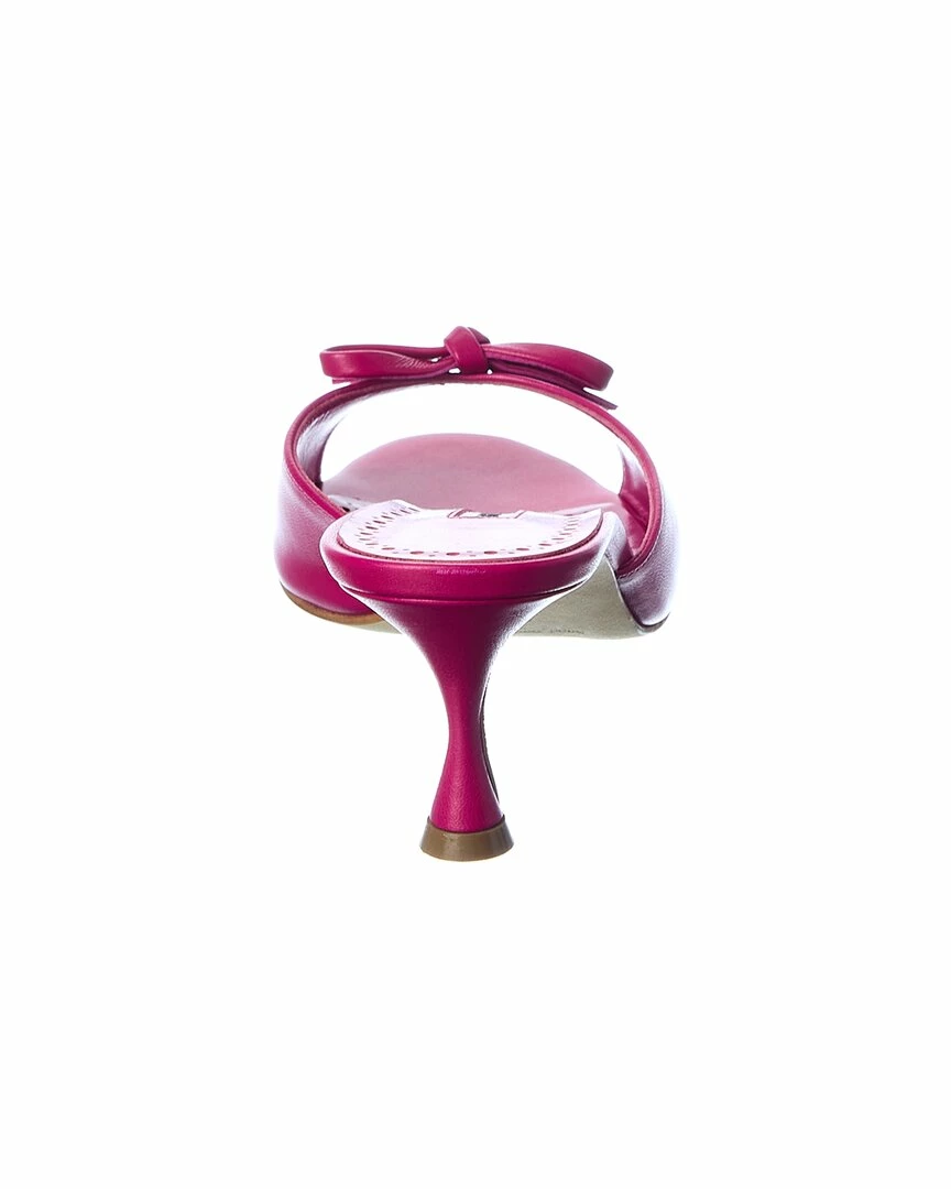 - Pertinanu 50 Leather Sandal In Magenta Leather With Bow Detail